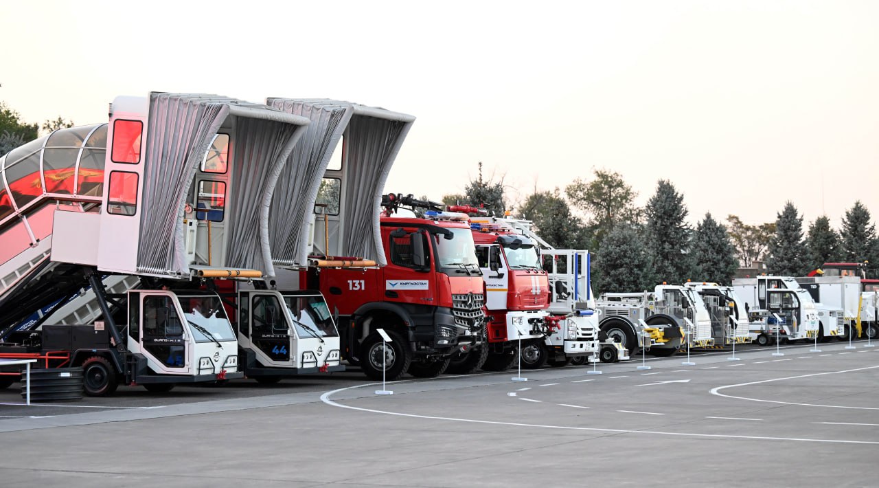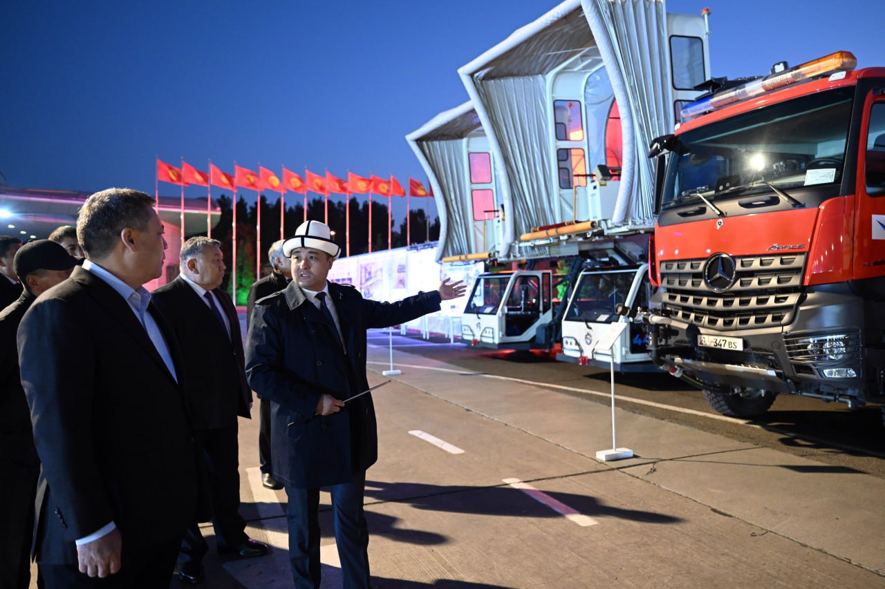 Главе государства председатель правления ОАО «Аэропорты Кыргызстана» Манас Самидинов представил планы по реконструкции воздушной гавани. Президент также ознакомился с новой специальной техникой ОАО «Аэропорты Кыргызстана», закупленной с 2023 года.