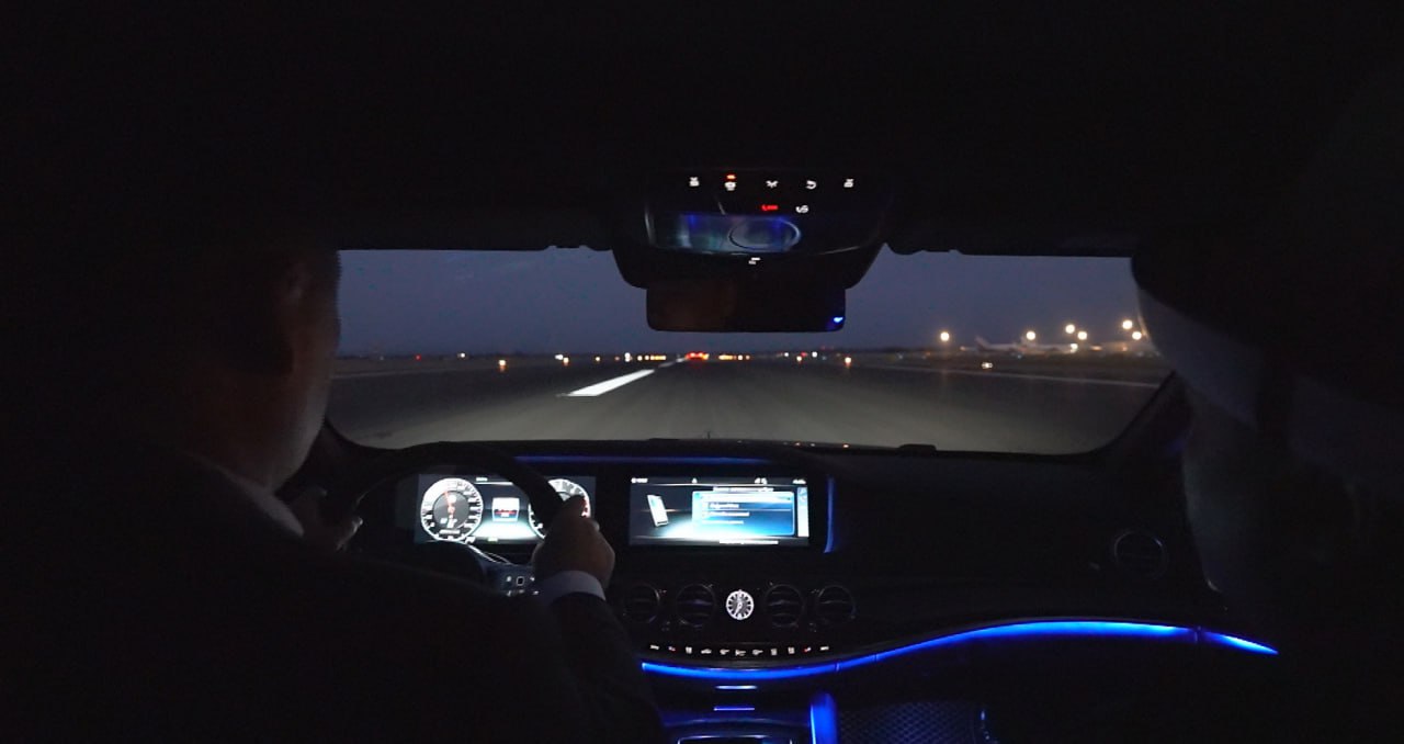 Президент также за рулем авто проехал по обновленной взлетно-посадочной полосе